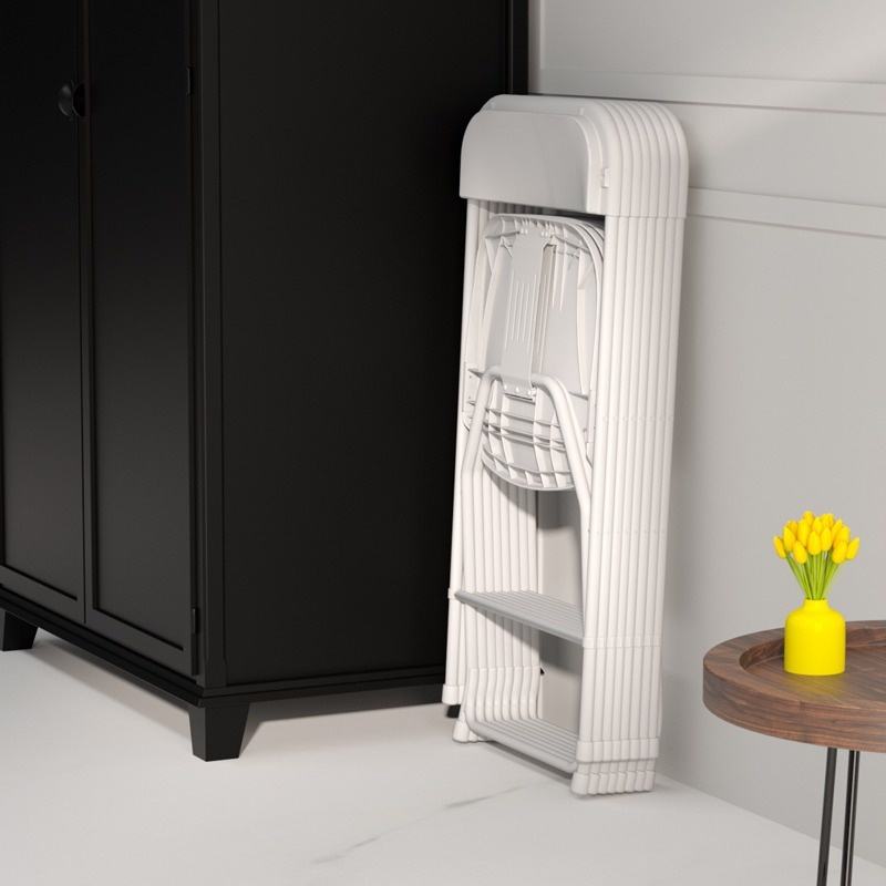 Portable and lightweight foldable plastic chair — ideal for office, home, dormitory, or training room seating.